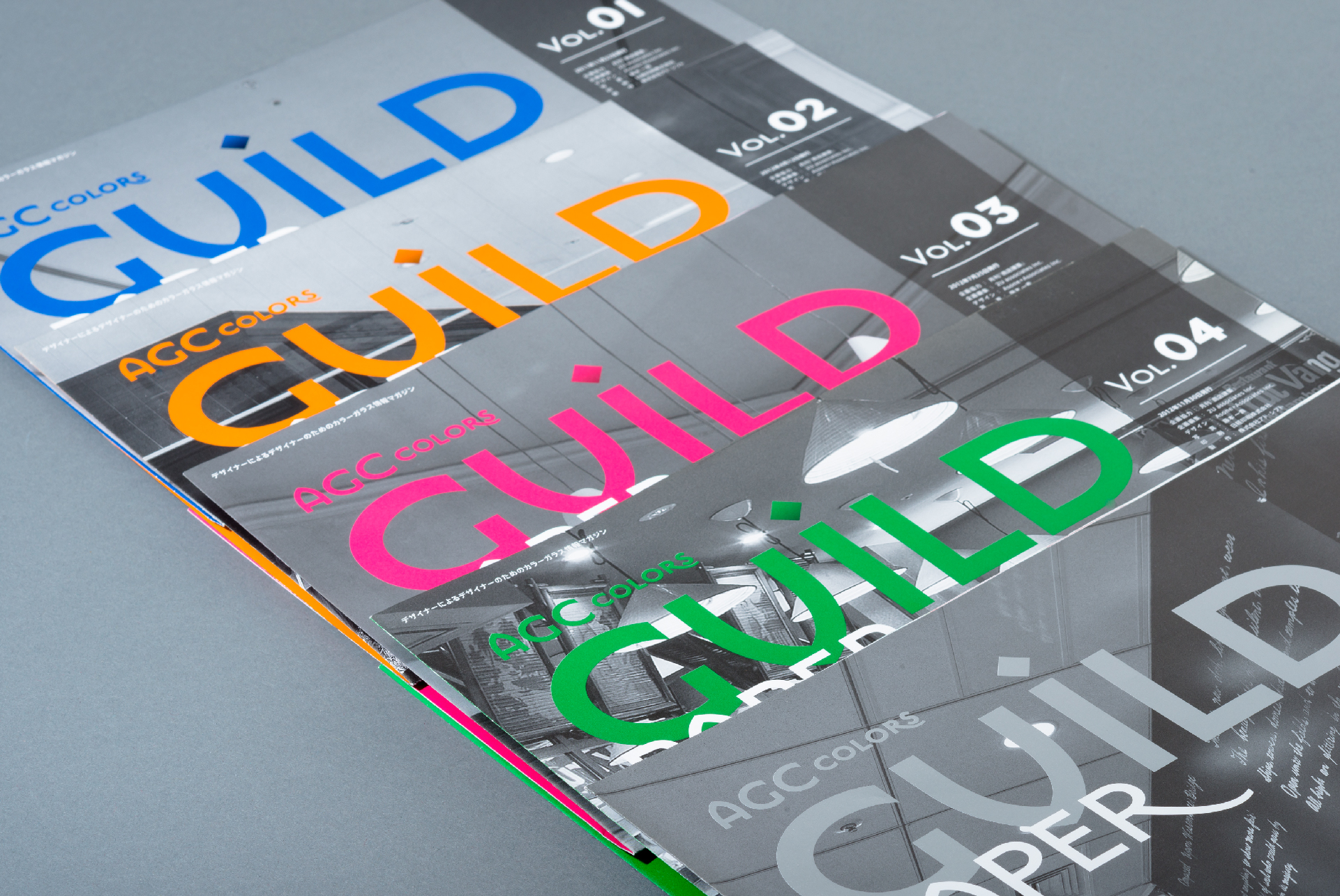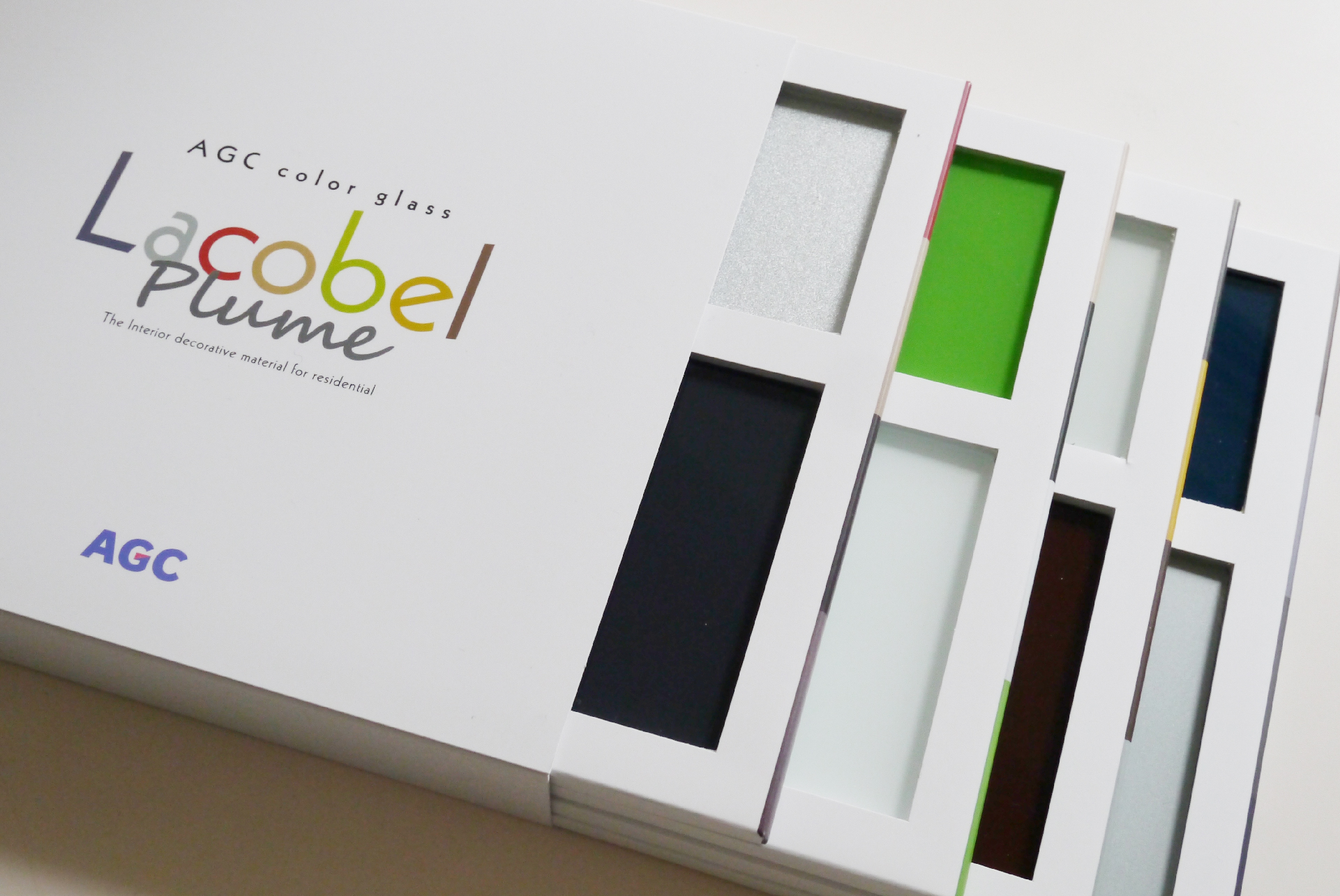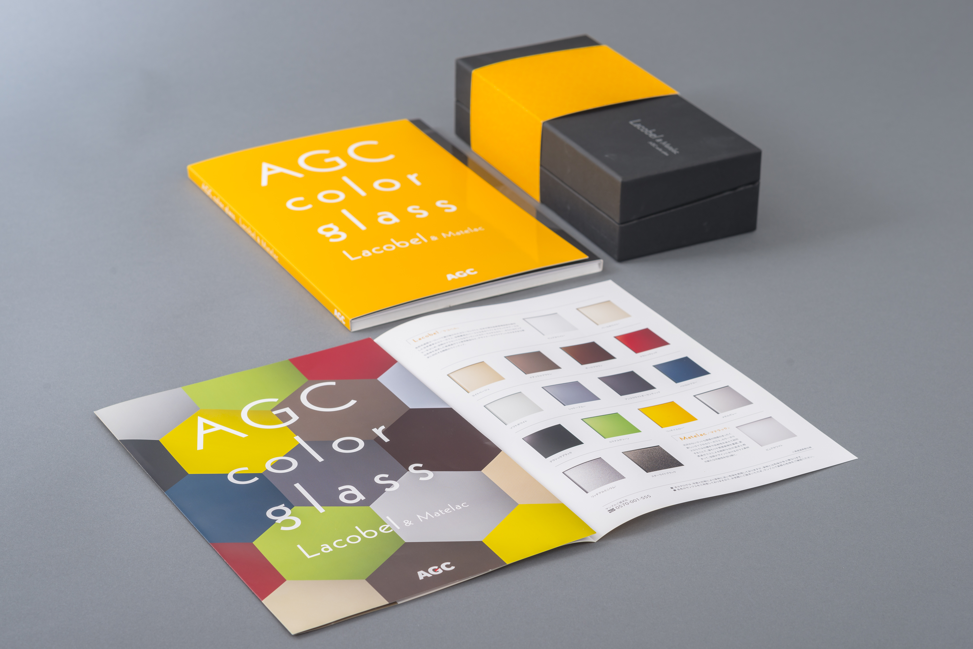 2018年7月からAGC株式会社に変わった旭硝子株式会社。特にインテリアや建築に使われるカラーガラスなどの販促物やサンプル帳の企画デザインを担当。ガラスをジュエリーや高級チョコレートのように美しく見せたいとうクライアントの要望を実現と同時に使いやすいパッケージの大きさや形状を追求した。